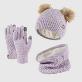 Add a playful pop to winter with the Bo Winter Set! This cozy set includes a hat with two adorable pom-poms on top, a soft neck warmer, and warm gloves, all designed to keep little adventurers snug and stylish in the cold. The hat features a fun rhombus-shaped knit pattern that’s both trendy and textured, adding a unique touch to the winter look.